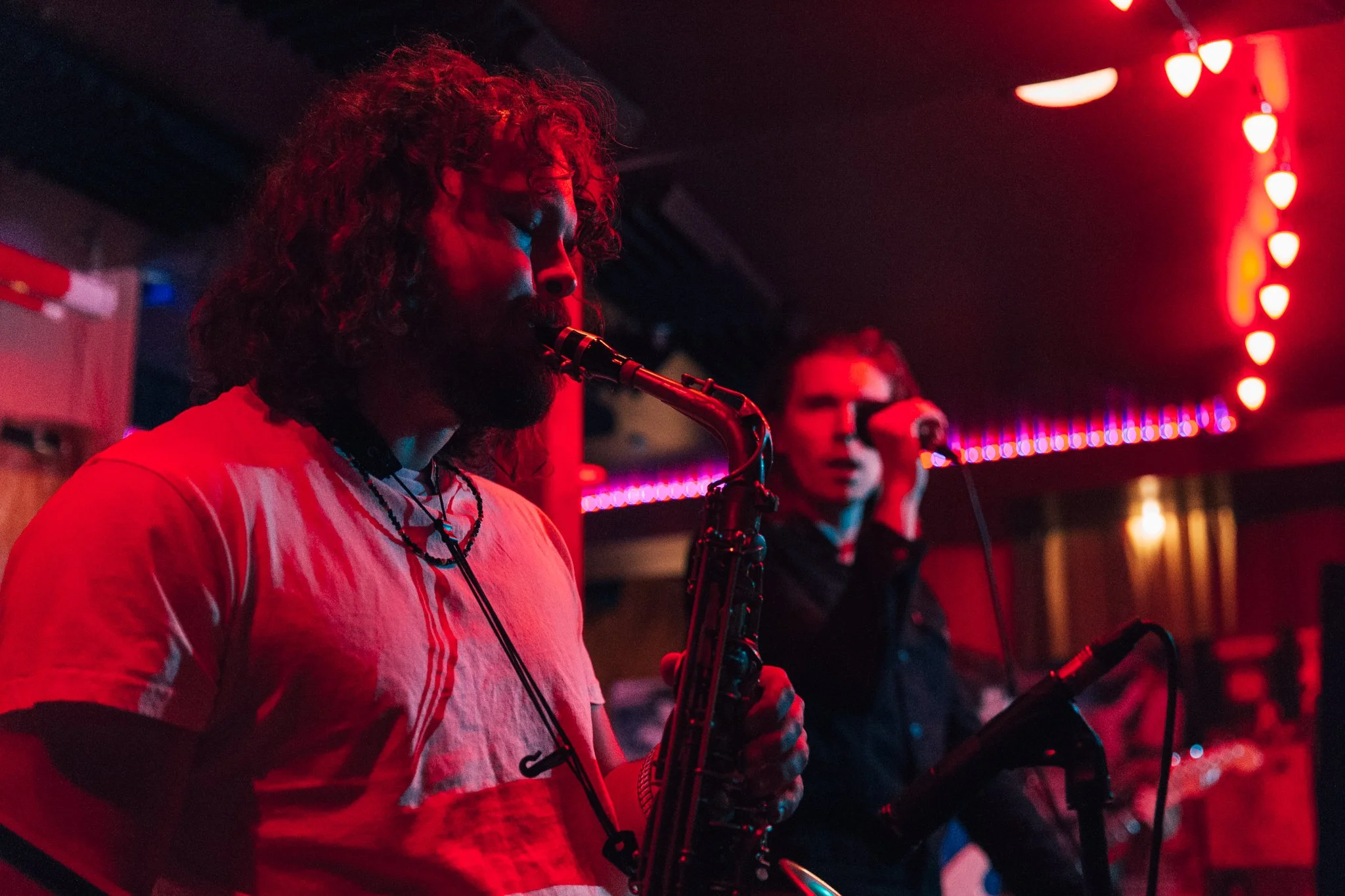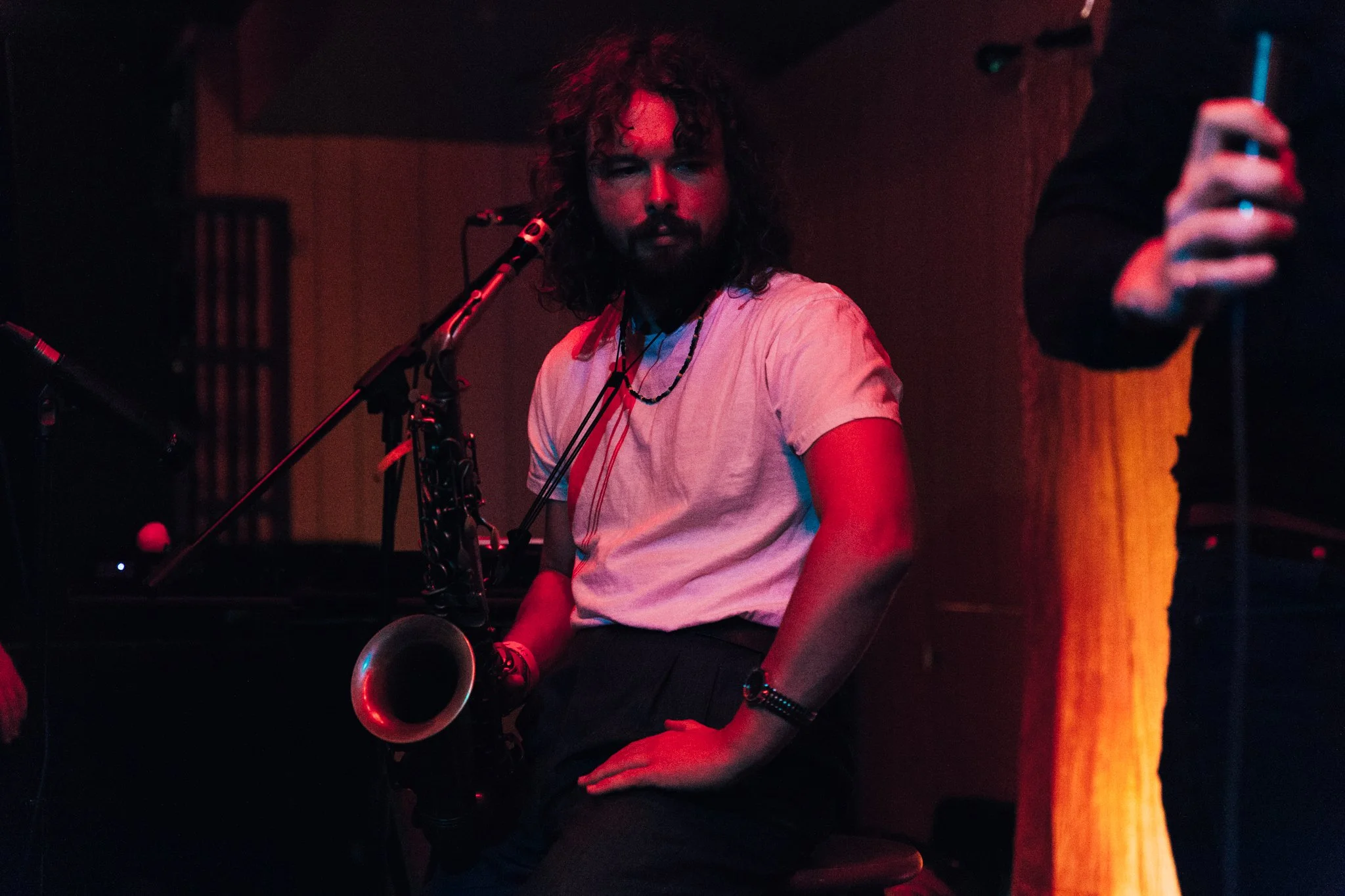 Cameron, thankfully, is not his character in real life. He spoke about how horribly out-of-touch and sad the characters in his songs were and cracked jokes with the crowd when there were sound issues. But compared to the album, the live version of the songs focused less on the 80s-like synths and more on the live instrumentation of guitars, drums, and saxophones. And speaking of sax, Roy Molloy was a hit with the crowd. As a regular in Cameron’s music videos and interviews, Molloy is an inseparable part of the Cameron brand, but he remained a quiet and stoic presence. Of course, that didn't stop people from yelling out "FUCK YEAH, ROY!" throughout the set. Whenever he ended his thousand-mile gaze to perform a sax solo, he received some of the biggest applause of the night. Thanks to the hilariously awkward dance moves and awkwardly hilarious lyrics of Cameron and company, the line between ironic and unironic enjoyment of music was undoubtedly blurred that night. Forced Witness is out now through Secretly Canadian.