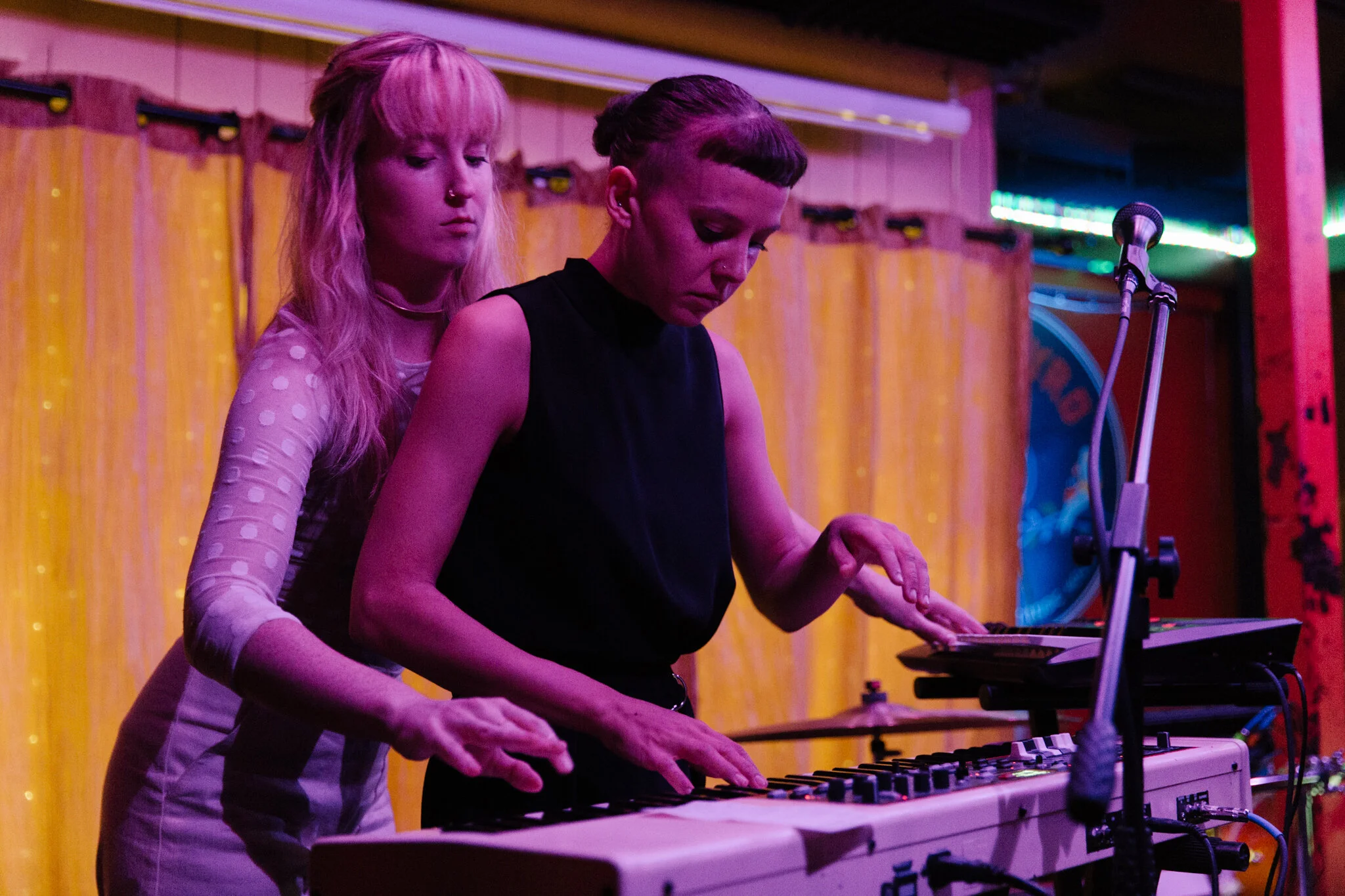 Gracie and Rachel doing their best Ghost impression at Songbyrd (Photo by Mauricio Castro / @themauricio)
