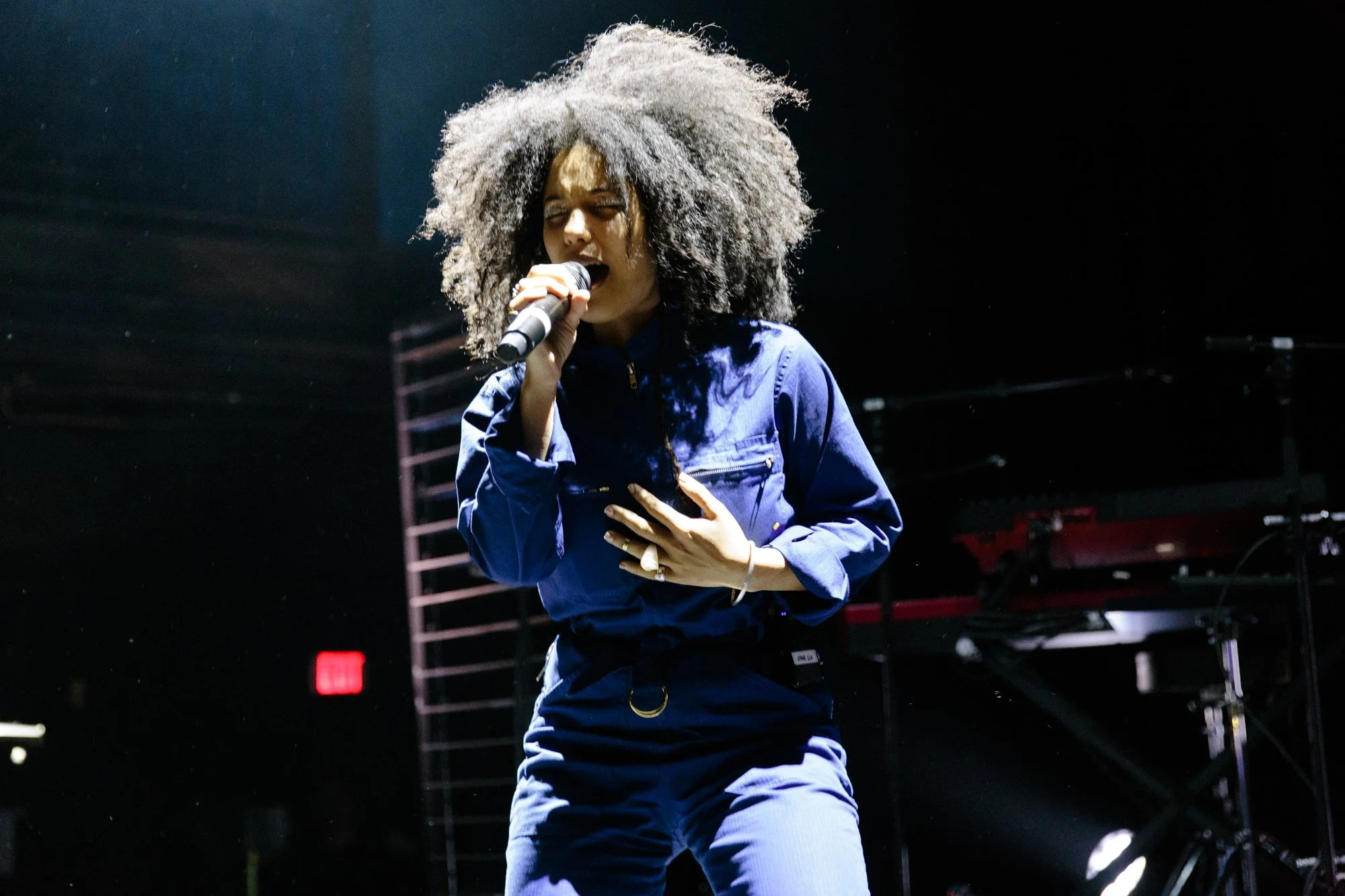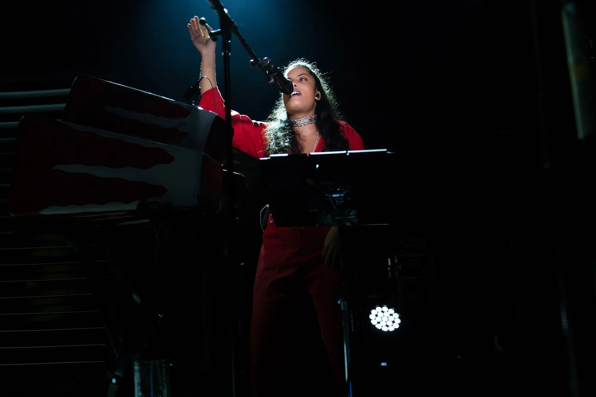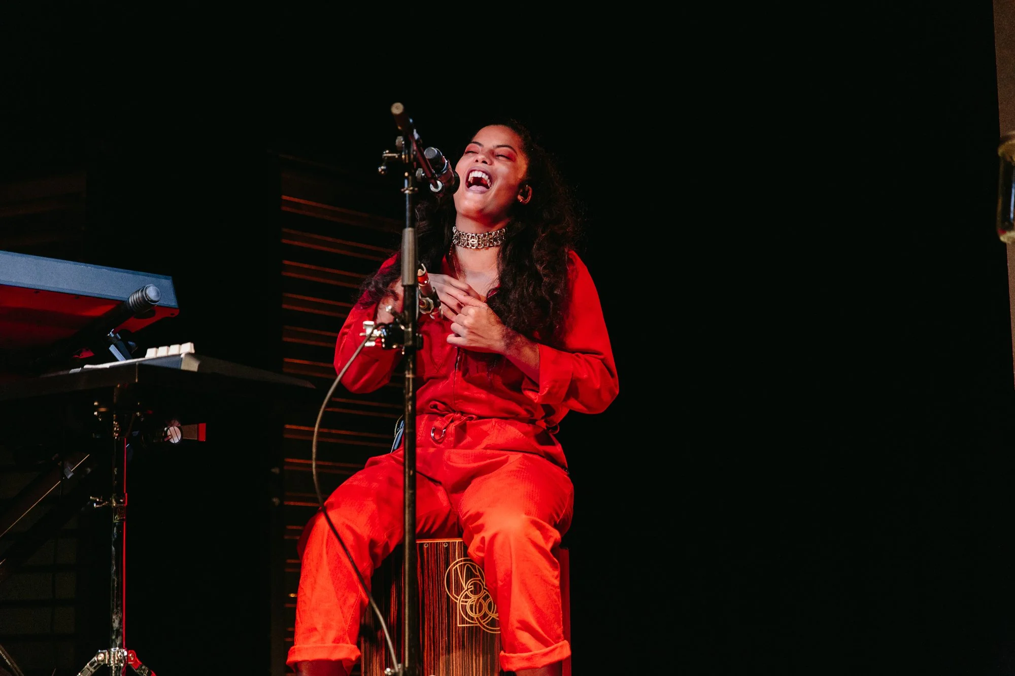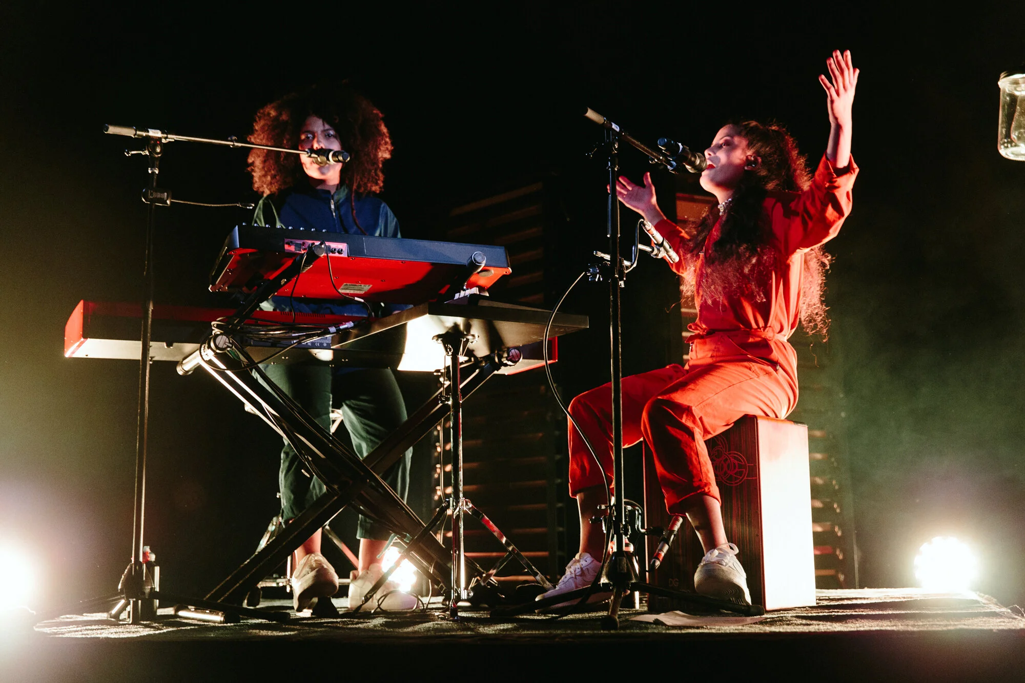 Although Ibeyi created intricate musical soundscapes on their albums, the duo opted for a more intimate and immediate experience at 9:30 Club. The two provided virtually all of the music on stage, utilizing very few backing tracks and performing without any other musicians. On stage, they placed keyboards and large wooden percussion blocks at the front corners, and another set of keyboards alongside a cajon at the back center. They switched between these two setups throughout the night, but for a song or two, they went front and center to belt out some powerful a cappella harmonies. And to call the duo powerful and confident would be a vast understatement. Every cajon slam and two-part harmony was purposeful and visceral, especially on the world-beating “Deathless” (written about Lisa-Kaindé’s arrest by a French officer when she was 16) and the Michelle Obama-sampling “No Man Is Big Enough for My Arms.” That's the power of Ibeyi - Just as Afro-Caribbean groups found inner strength in their musical traditions, Ibeyi finds theirs by blending their musical lineages with contemporary music to create something that is equal parts cathartic and resilient.