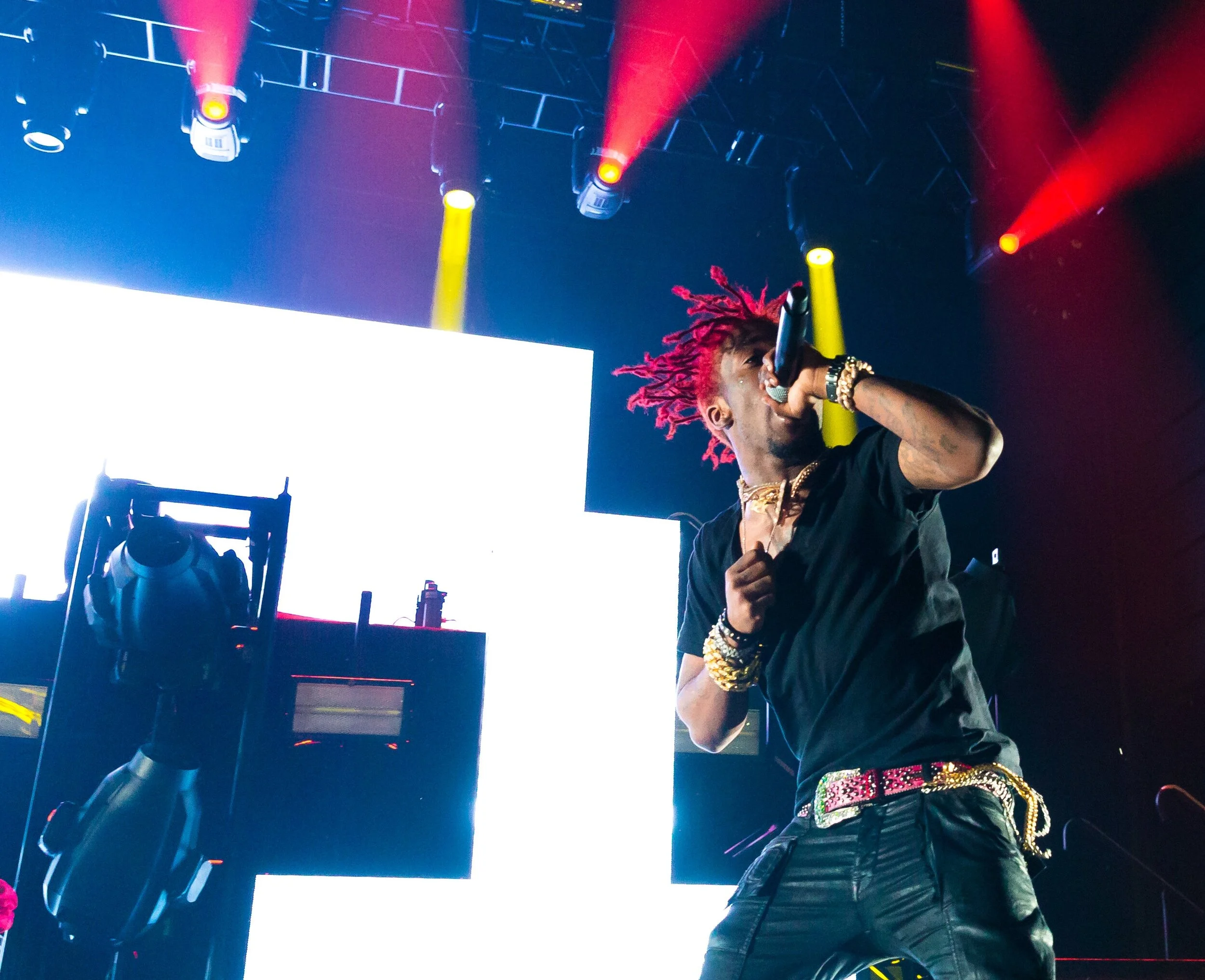 When performing his breakout single "Money Longer," Uzi hit his signature shoulder shimmy in which to resist the urge to do it yourself was a challenge in itself. There was no slowing Uzi down in his delivering of the barrage of hits that catapulted him to his position in rap today. Crowd favorites from his newest album consisted of "444+222," "For Real," "Neon Guts," "Early 20 Rager," and his biggest solo hit thus far "XO TOUR Llif3". "XO TOUR Llif3" was performed twice back-to-back. On the second playback, Uzi asked the crowd "Who knows the whole song?" before tossing a lucky fan his microphone. Unfortunately this opportunity wasn’t taken advantage of properly due to the fact the microphone fell straight to the floor and nobody attempted to sing the lyrics. "XO TOUR Llif3" and "The Way Life Goes" is perhaps when Uzi is at his peak, in which he finds his niche in the emo rap realm by discovering the perfect balance of singing and rapping about the emotions experienced during his breakup with his longtime girlfriend.