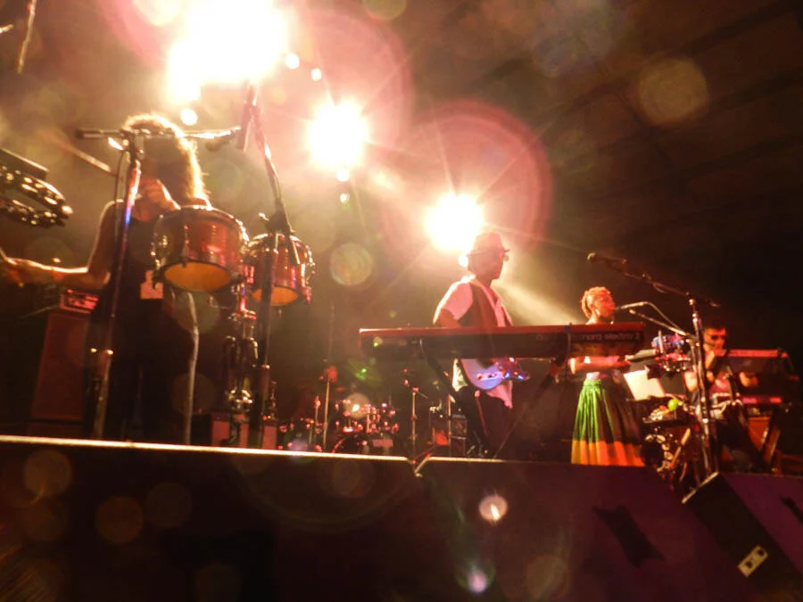 The rain pushed the final "Teepee Stage" performance to the next morning, so it was off to the late shows at the "E-Rena," a large covered roller hockey rink fitted with a very impressive stage and lighting rig. Brooklyn's Pimps of Joytime were up first. Like a lot of bands on the Equifunk lineup, the Pimps are jacks of all trades, creating what bandleader Brian J calls a "gumbo of sound,” afrobeat, reggae, dub, salsa, and of course a little funk. The E-Rena crowd took a little while to get revved up – one gets the sense that during the rain they retreated to their bunks for some light recreation – but once the Pimps got going it was all over. Balloons and beach balls flew, girls stood on the sideline and hula-hooped (is that the verb?), and everybody danced. Don’t take our word for it though – go see the Pimps of Joytime at Ram’s Head Live on July 23 and judge for yourself.