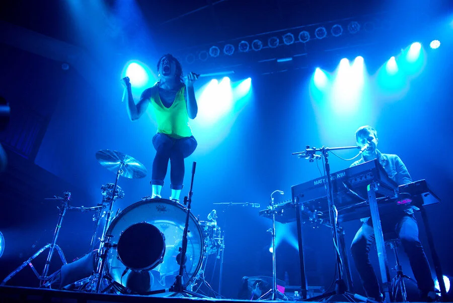 Matt and Kim at the 9:30 Club are CLEARLY NOT FUCKING AROUNDJust before they started thrashing the fuck out of “Block After Block,” from 2009’s Sidewalks, Matt yelled “DC, why are you so good to us? Two sold out shows, wow!” Then he and Kim blew the motherfucking doors off the place from the beginning to the end of the show. They followed “Block” with “Tonight” off their new album Lightning - just released on October 2 - after a brief interlude wherein Matt made Kim stand on her drum kit to show off her super-toned ass. A wind machine blew non-stop from the front of the stage, and it became apparent after 10 minutes how necessary the extra circulation was - Kim beat the fuck out of those drums when she wasn’t jumping up and down, walking on top of the audience, or standing on something shouting lyrics and banging drumsticks together, and Matt spent as much time leaping off his stool as he did perched on it in front of his stacks of keyboards.