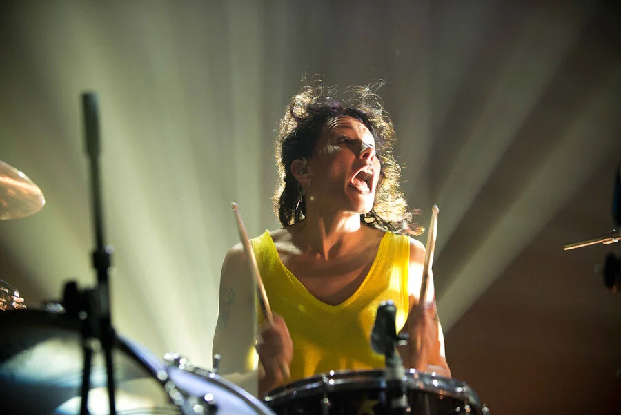 In case we weren’t having enough of a party in the audience, Matt threw uninflated balloons at us, highlighting the do-it-yourself attitude for which the band is famous - if you wanted a fucking balloon riot of a song, you’d better get to blowing up some fucking balloons. Meanwhile Kim continued her manic thrashing on stage and Matt used a mouth cannon to spew confetti all over the place, then they went into “It’s Alright,” their self-proclaimed favorite song from the new album. You’ve got to be one grumpy-assed sumbitch if you don't feel alright throughout every note of it - it’s like mainlining oxygen. Matt told us all, “I want you to get so weird you embarrass yourself,” and we seriously tried our best. One guy wearing a squid hat sailed atop us all, despite a seeming moratorium on crowd-surfing for the night, and Kim commented that he looked like a condom with eyes - she then delivered a quick monologue that would break the internet if we print it, but suffice to say it was a combination of “fuck,” “hard,” “D.C.,” and “you’ll want to see where you’re going,” and by the time she was done, everyone was jumping straight up and down and screaming.