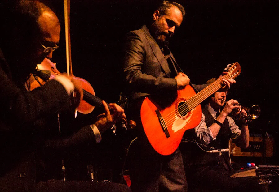 On Monday, April 9th, Devotchka and The Magnetic Fieldsplayed to a sold out crowd at the 9:30 Club in Washington, DC. Many in attendance had previously seen Devotchkaheadline their own show at the club back in March 2011 and (rightfully so) were coming back for seconds. That 2011 show was epic and jam packed with excellent musicianship, visuals, and even dancers descending from the ceiling Cirque de Solei- style. On this current tour, however, Devotchka has clearly acquiesced to the austerity of the headlining Magnetic Fields.