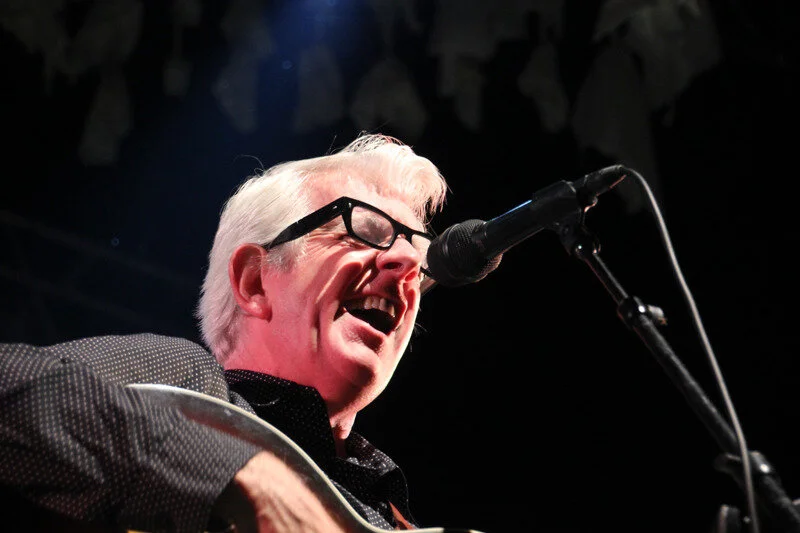 Nick Lowe holding the crowd captive.Nick Lowe was first, and I don’t think an opening act has ever impressed me quite so much. I’d heard of him, and eventually recognized him as that guy who wrote “Peace, Love and Understanding”, but no longer is he that guy to me. Why? Because he’s Nick Effing Lowe, that’s why. His voice sounded rich and his performance was just excellent. The songs were all crafted beautifully and if I weren’t such a sucker for Wilco I would’ve bought some of his music on the way out. He joked about only being there to test the PA, but he did far more than that. He ended with probably the most touching version of “Peace, Love and Understanding” I’d ever heard.