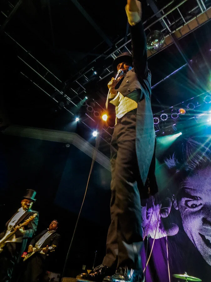 Hives frontman Pelle Almqvist puttin' on the Ritz at the 9:30 ClubThe sold-out audience was a mixed bag of ages, from a brotastic blend of fraternity brothers and lawyers sneaking out for a night of slamming on the main floor, to the balcony packed with 10-year-olds and their parents, all wearing Hives shirts from the past two decades. Regardless of age or gender, upstairs or downstairs, all breathing things in the entire venue, from the tiny baby mice in the basement to the tiny baby bats in the rafters, were jumping up and down in a uniform thrashy pit of ZOMG by the time the band got to “Walk Idiot Walk” five or six songs in. Lead singer Pelle Almqvist (or Howlin’ Pelle Almqvist to his friends) then launched into a shrieky version of “My Time is Coming,” where the chorus was the only decipherable lyric.