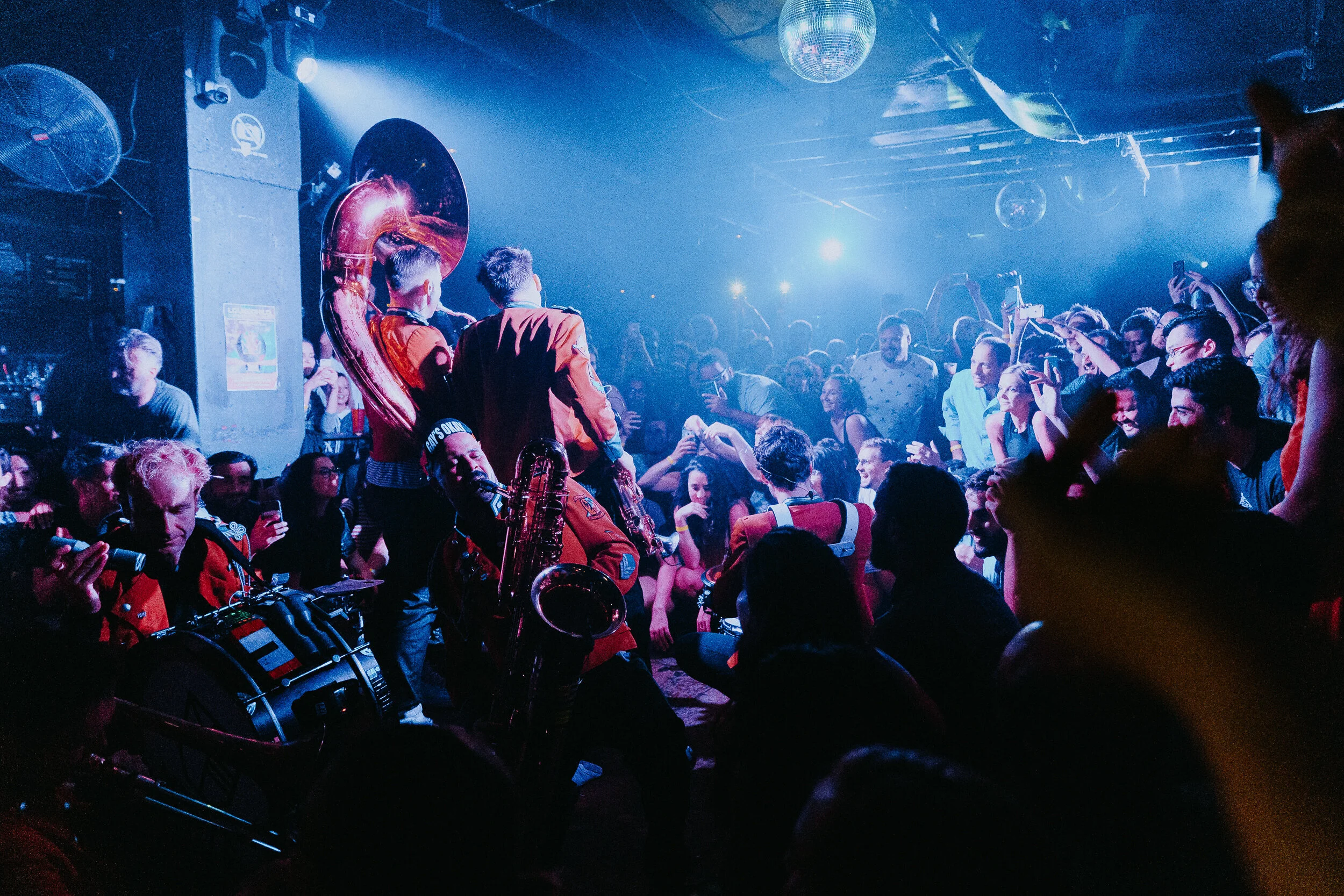 MEUTE in a nutshell: they take songs that exist firmly in the world of EDM and bring them to life as an 11-piece marching band. Marimbas, saxophones, trumpets, bass drums, even matching red jackets. The works. The group has gained an impressive following in Europe over the last few years, starting out in public city squares and eventually graduating to massive headlining shows and massive festival crowds. With their performance at U Street Music Hall, the Hamburg-based group continued their worldwide conquest with their first-ever concert in North America.