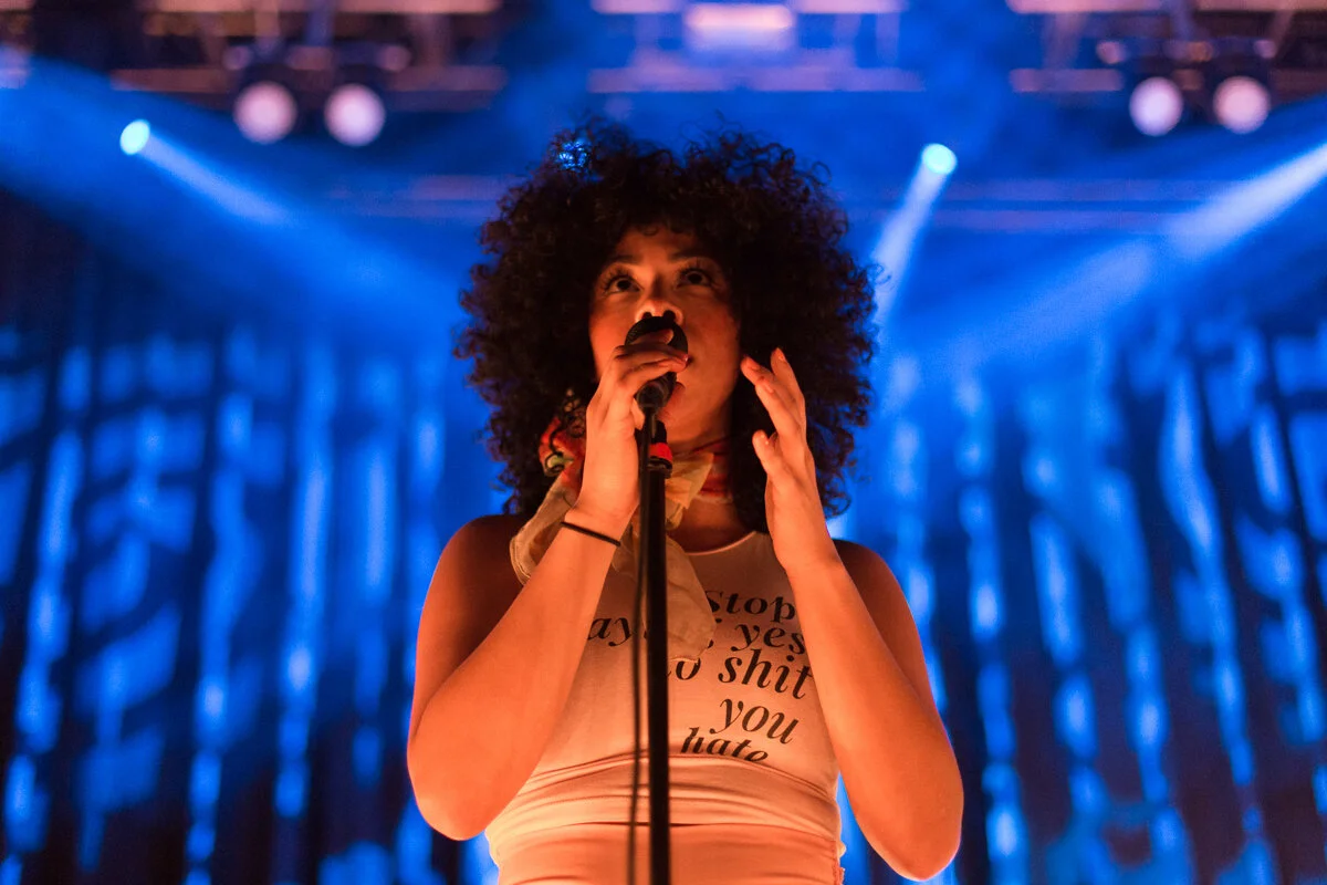 In a humorous start, the band had the crowd remove their hats for the national anthem (in reality, a hilarious rendition of the 20th Century Fox intro played on the recorder). But once the show was rolling, PHOX commanded the crowd’s full attention. The band was arranged in a circular pattern on stage lined by Christmas lights, and Martin took center stage, which for better or worse gave the impression that the show was about Martin first and foremost. However, her serene and subdued vocals paired with the band’s Paul Simon-like melodies on songs like “Kingfisher” (aided by two members of opening band Cuddle Magic) were relaxing.