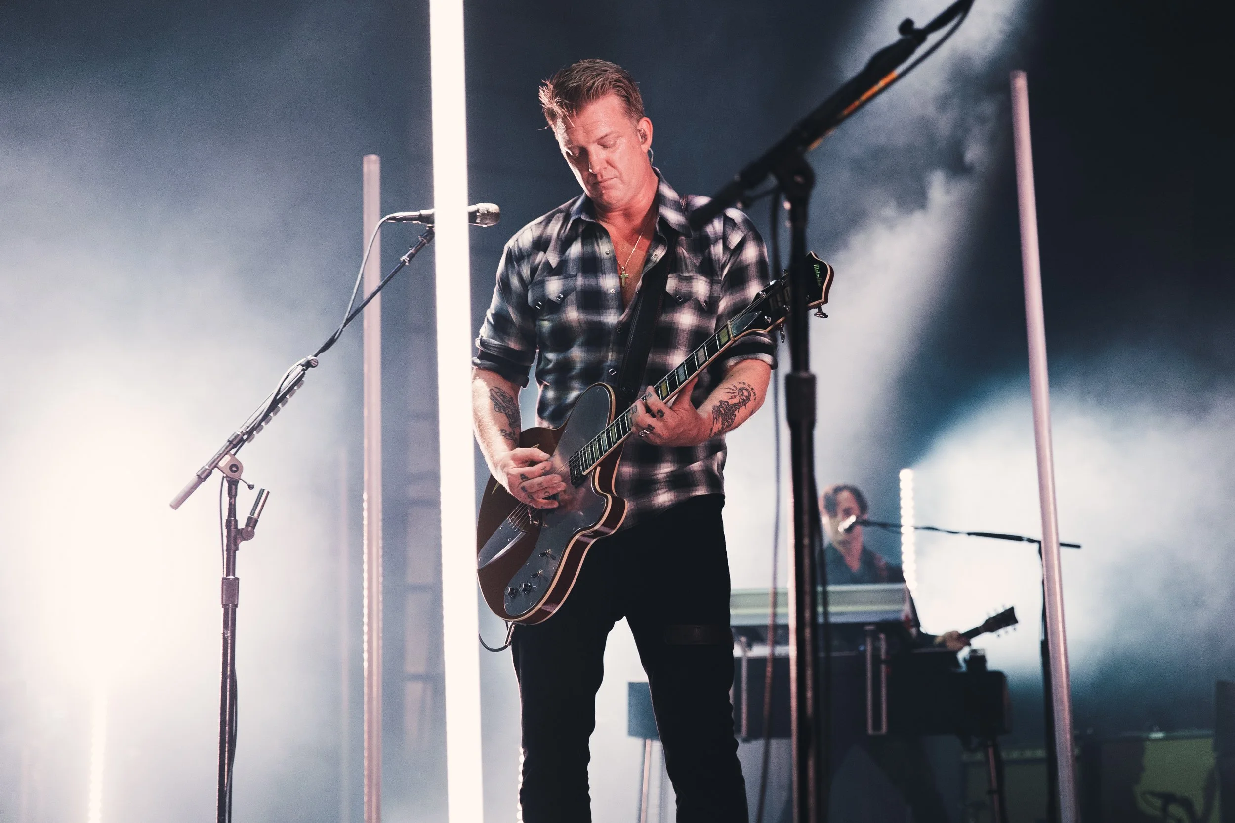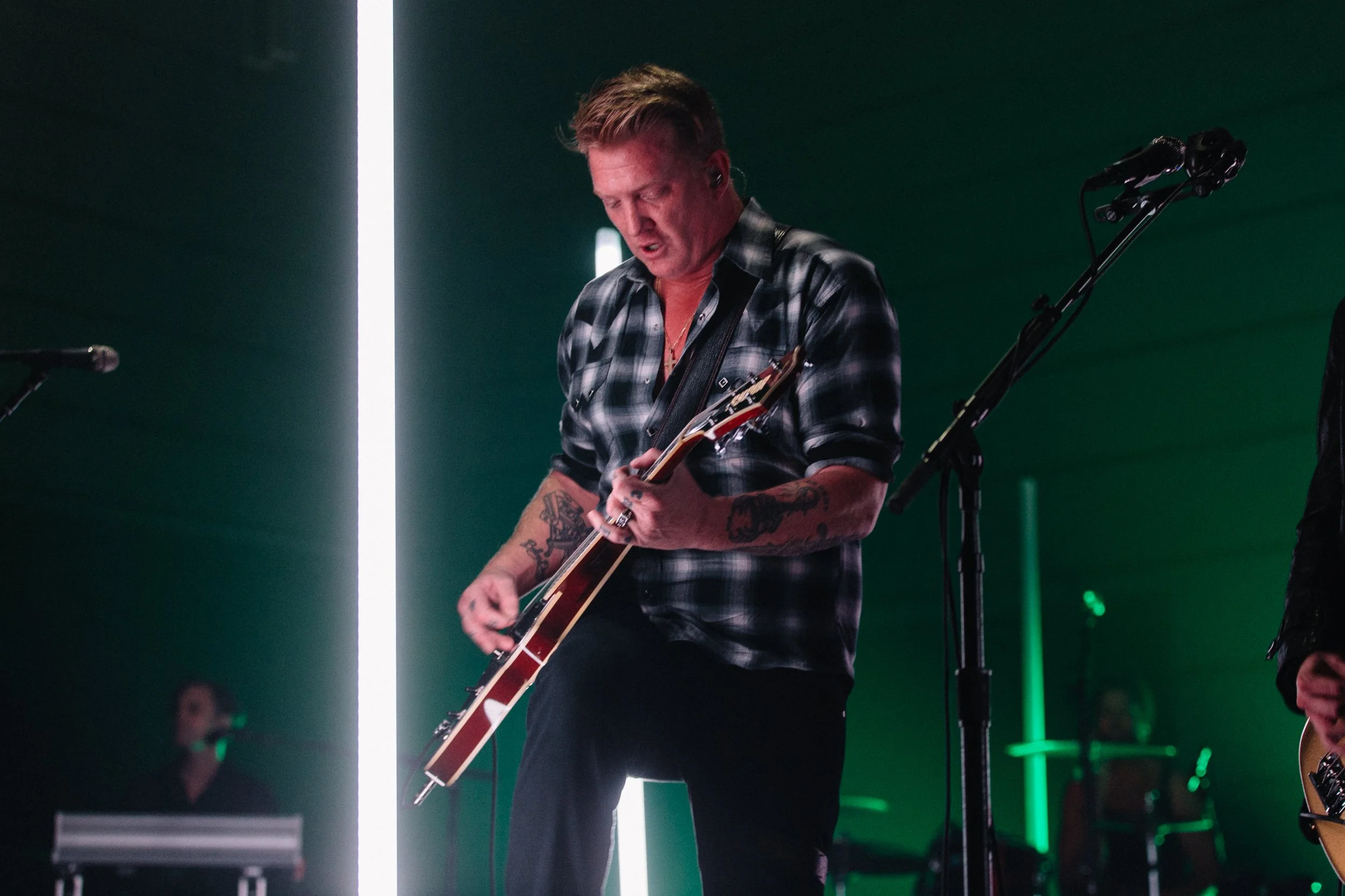 Josh Homme is rocking the cool dad aesthetic with swagger these days (cool dad level: playing a 6th-grade graduation party). And why shouldn’t he? Twenty-one years after Queens of the Stone Age’s debut, he’s still hoisting the rock n’ roll flag high above the rest and he knows it. The critical acclaim that the band has received since their breakout 2003 hit “No One Knows” has allowed them to experiment with their riff-heavy sound in new, sleeker directions. The addition of producer Mark Ronson for their latest album Villains (released through Matador Records, their first after their departure from Interscope) said as much. There’s no doubt that Homme and company wanted to get people dancing more than headbanging this time around, but with their stop at The Anthem, there was more than enough of both to go around during their two-hour set.