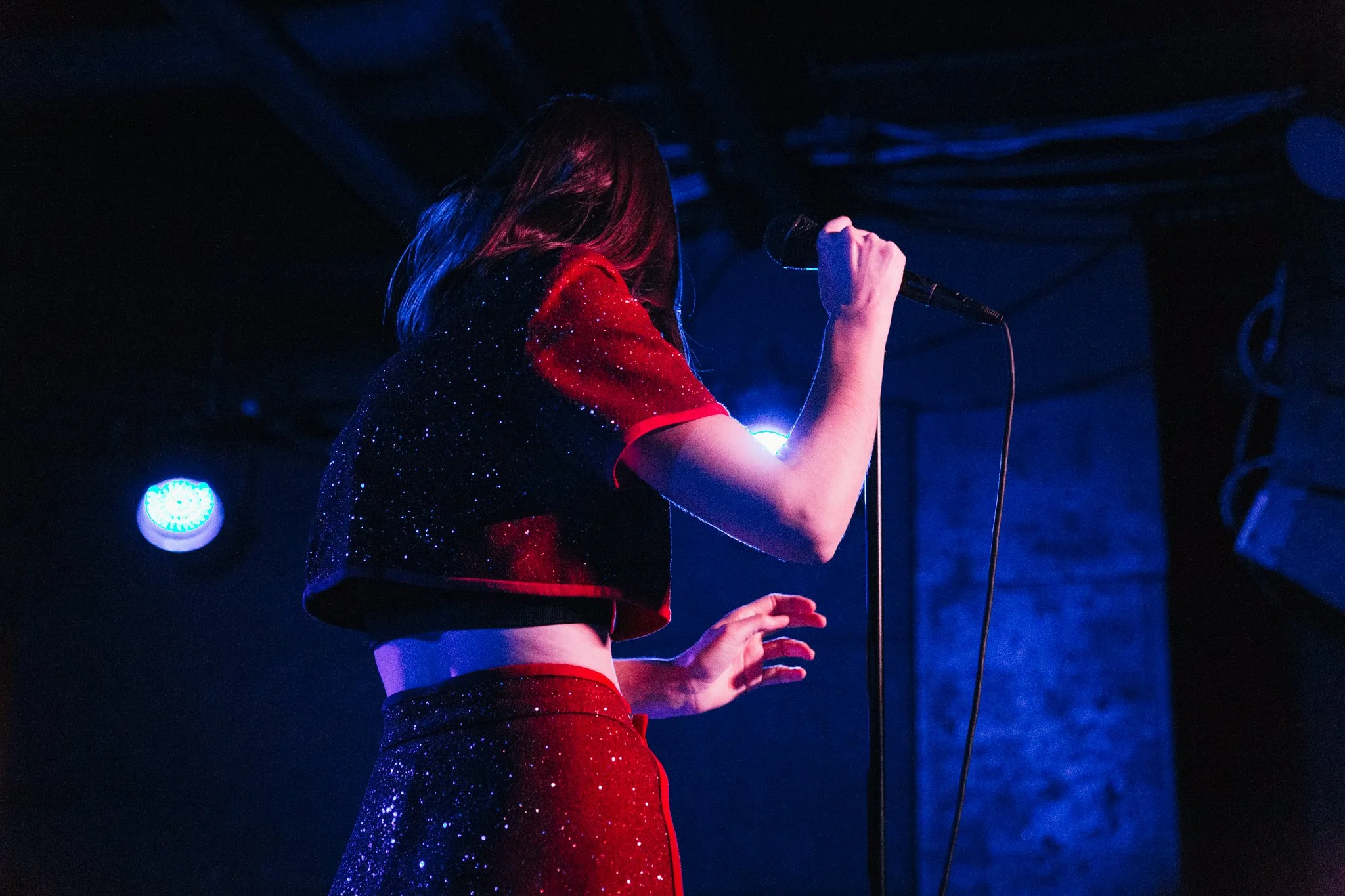 Julie Budet caught red-handed by her bandmates at U Street Music Hall (Photo by Mauricio Castro / @themauricio)